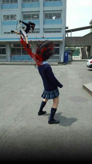 @ShingekiKyojin 私の部活での進撃の巨人ごっこはこんな感じです。皆さんのように勇敢に戦う姿ではなく、巨人にくわえられたときの人類の諦めを表現しましたw巨人の幸せそうな顔と人間の諦めに満ちた顔とのコラボレーションです。 pic.twitter.com/8BZGCKiEXw