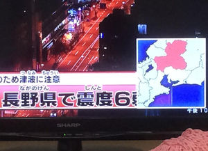 11月22日午後10時8分ころ、甲信越地方で強い地震がありました。震源は長野県北部。震源の深さは約10キロ。マグニチュード6.8と推定されています。