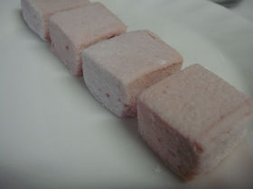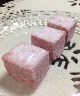 甘酸っぱくてほんのりピンク色のキュートなマシュマロです。卵白不使用。バレンタインデー、お誕生日会、プレゼントにいかが?
